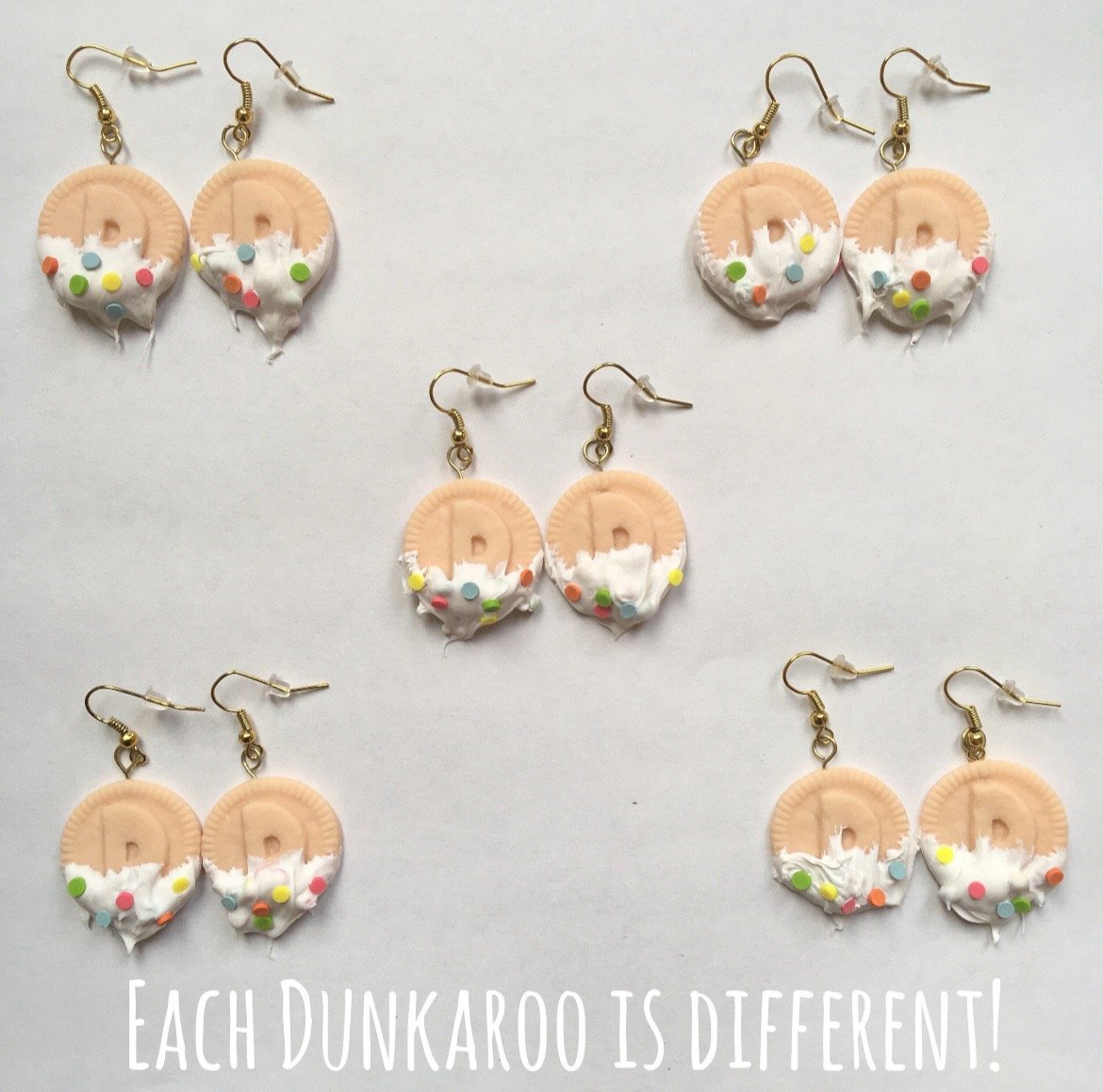 -Please note that no two pairs of earrings are the same, and that each cookie is different! The pair you receive will be the same design but may have a size difference, the frosting might look a bit different, etc(see the last picture). Also note that the pair in the main pictures are NOT for sale. The differences are always minor though! Each pair is as unique as its owner!
