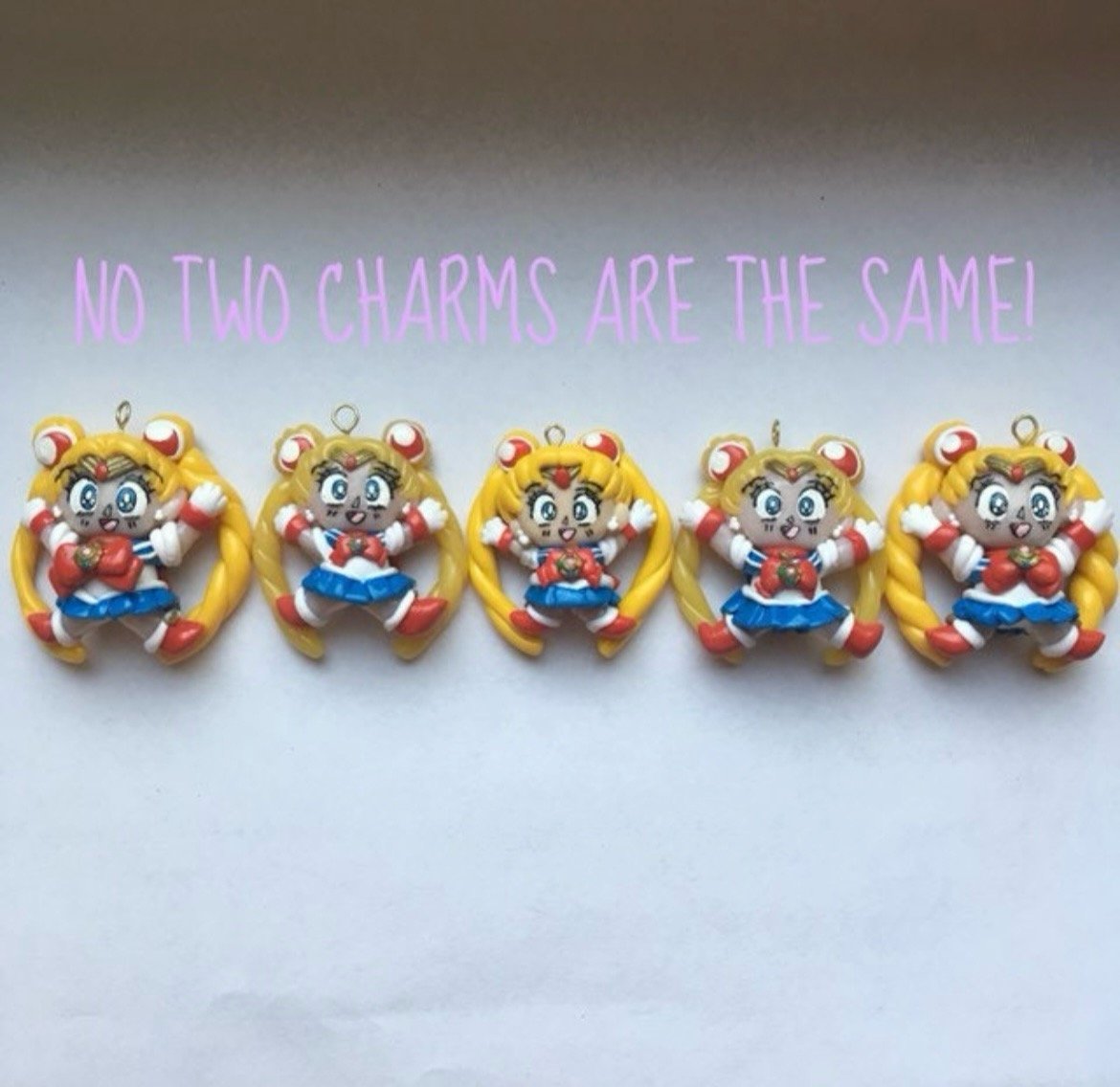 -Please note that no two charms are the same! The charm you’ll receive will be the same design but may have a size difference, a slightly differently painted face, etc.(see the last picture) The one in the main pictures is NOT for sale. The differences are always minor though! Each charm is as unique as its owner!