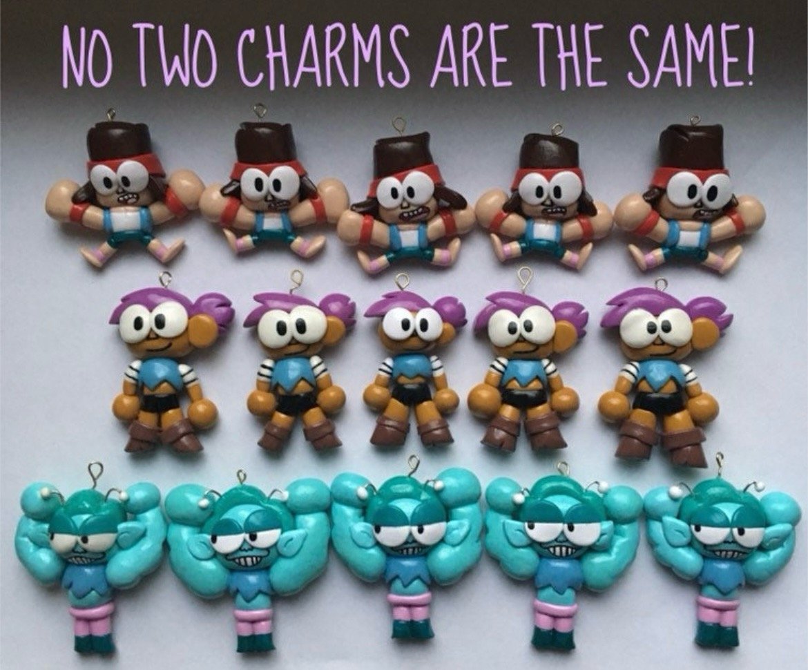 -Please note that no two charms are the same! The charm you’ll receive will be the same design but may have a size difference, a slightly differently painted face, etc. The ones in the main pictures are NOT for sale. Each charm is as unique as its owner!