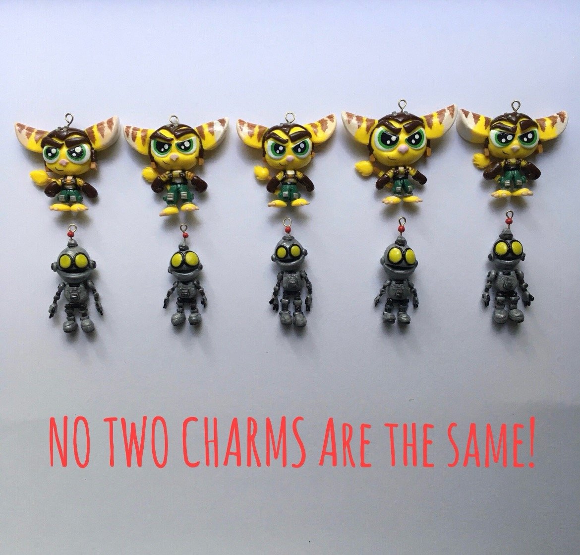 -Please note that no two charms are the same! The charm you receive will be the same design but may have a size difference, a slightly differently painted face, etc(see the last picture). Also note that the charms in the main pictures are NOT for sale. The differences are always minor though! Each charm is as unique as its owner!